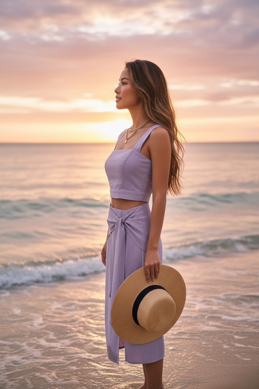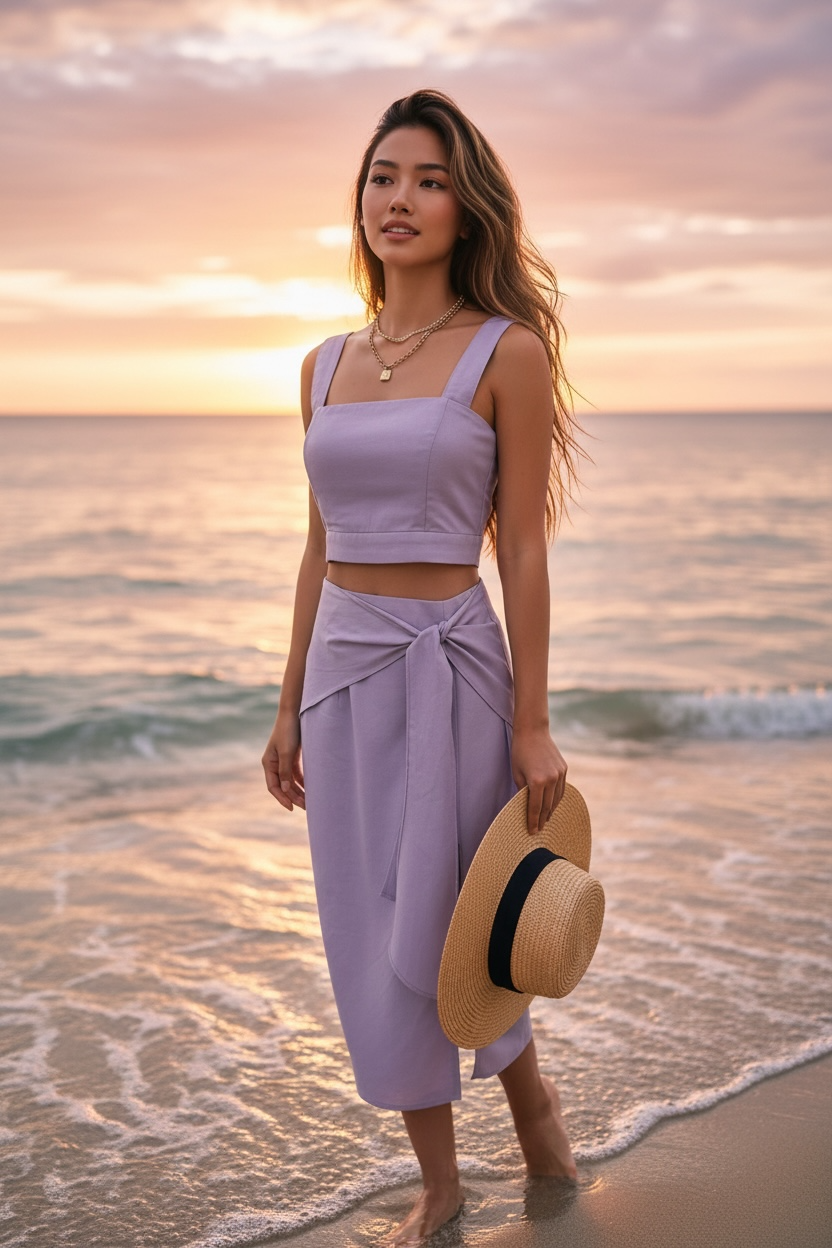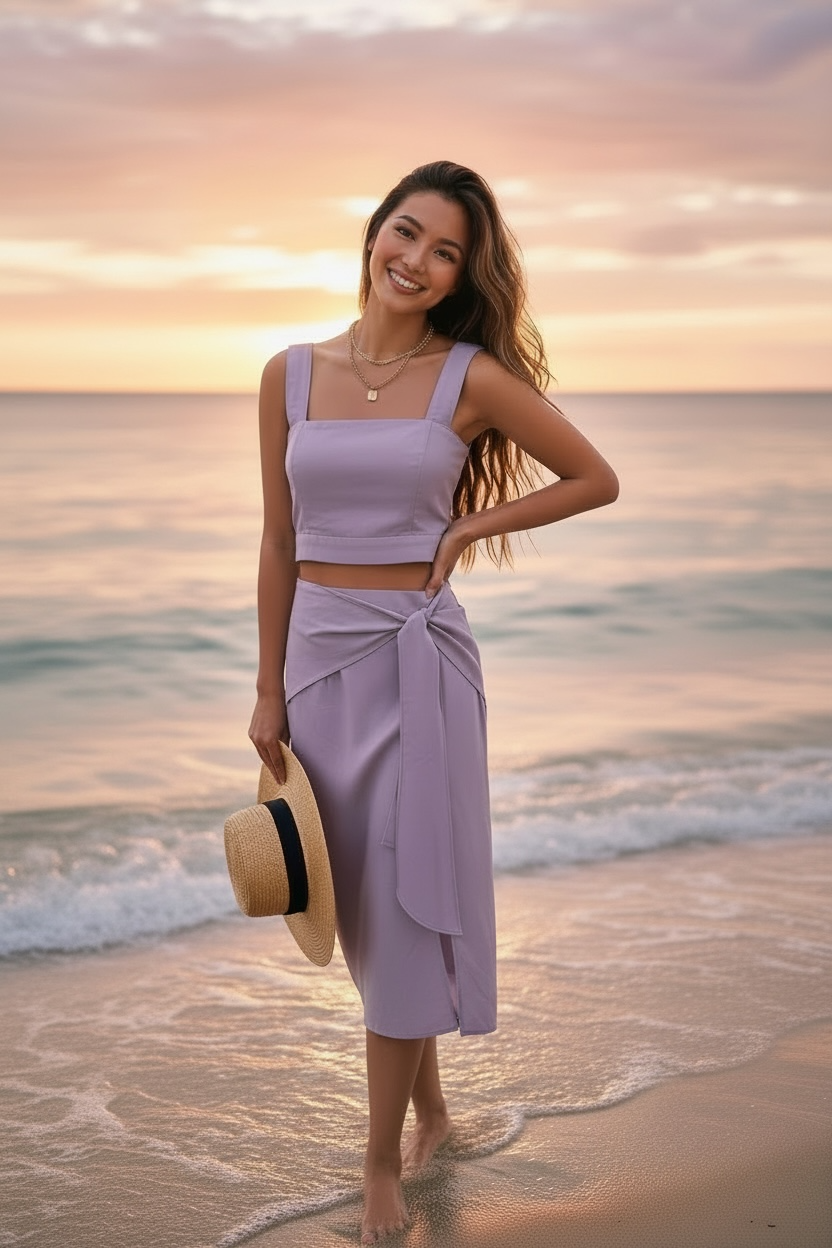 The Oh My Girl Skirt Set is your go-to lavender two piece outfit designed for warm days, beach escapes, and sunset moments.